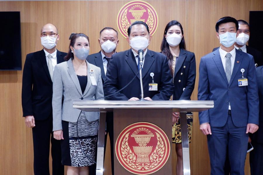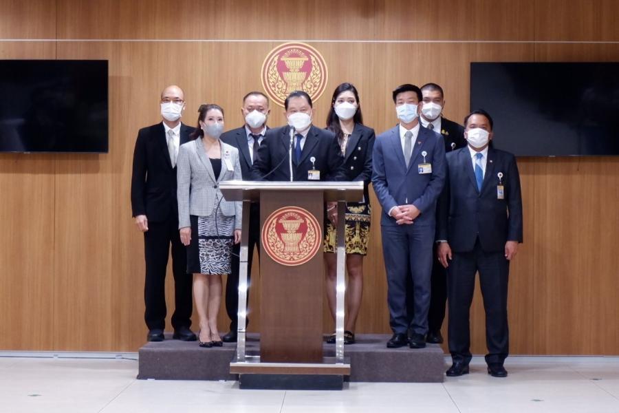 นายไชยา พรหมา ประธานคณะ กมธ.ศึกษาการจัดทำและติดตามงบประมาณ และคณะ แถลงข่าว ผลการพิจารณาของคณะ กมธ.
