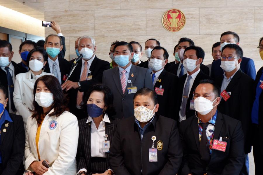 นายปรีดา บุญเพลิง ส.ส.พรรคครูไทยเพื่อประชาชน นายระวี มาศฉมาดล ส.ส.พรรคพลังธรรมใหม่ นายคฑาเทพ เตชะเดชเรืองกุล พรรคเพื่อชาติไทย และพรรคการเมืองพรรคเล็กทั้งในและนอกสภาผู้แทนราษฎร รวม 42 พรรค ร่วมกันแถลงข่าว