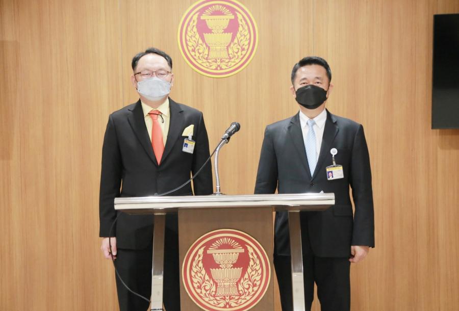 นายบัญญัติ เจตนจันทร์ พร้อมด้วยนายยุทธพงศ์ จรัสเสถียร โฆษกคณะ กมธ.วิสามัญพิจารณาร่างพระราชบัญญัติงบประมาณรายจ่ายประจำปีงบประมาณ พ.ศ. 2566 แถลงข่าว ผลการประชุมคณะกมธ. ครั้งที่ 4/2565