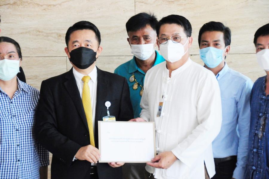 นายบัญญัติ เจตนจันทร์ โฆษกคณะ กมธ.วิสามัญพิจารณาร่างพระราชบัญญัติงบประมาณรายจ่ายประจำปีงบประมาณ พ.ศ. 2566 รับยื่นหนังสือจาก นายดิเรก จอมทอง ประธานเครือข่ายผู้ได้รับผลกระทบจากภัยช้างป่าภาคประชาชน และคณะ