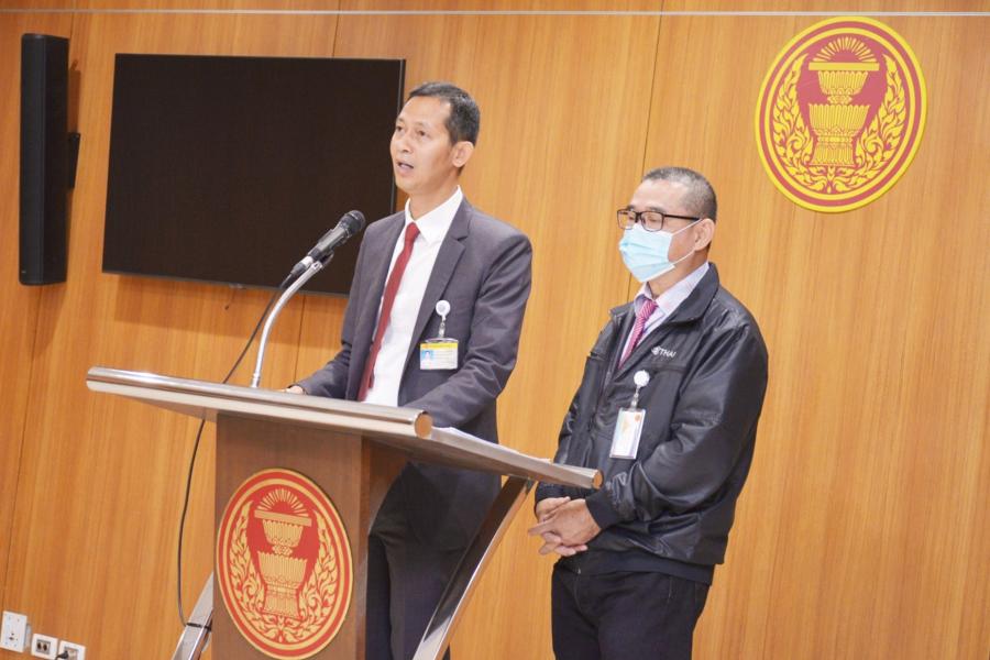 นายสัณหพจน์ สุขศรีเมือง และนายเรืองไกร ลีกิจวัฒนะ โฆษกคณะ กมธ. วิสามัญพิจารณาร่าง พ.ร.บ.งบประมาณรายจ่ายประจำปีงบประมาณ พ.ศ. 2566 แถลงข่าวความคืบหน้าการพิจารณาของคณะ กมธ.