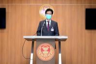 นพ.สุกิจ อัถโถปกรณ์ ที่ปรึกษาประธานสภาผู้แทนราษฎร แถลงข่าวกรณีที่นายชวน หลีกภัย ประธานรัฐสภาและประธานสภาผู้แทนราษฎร มีอาการป่วยเมื่อช่วงเย็นวันที่ 28 มิ.ย. 65
