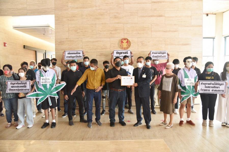 นายศุภชัย ใจสมุทร ประธานคณะ กมธ.วิสามัญพิจารณาร่างพระราชบัญญัติกัญชา กัญชง พ.ศ. .... รับยื่นหนังสือจาก นายณัฐพงศ์ สำเภาแก้ว ผู้ประสานงานเครือข่ายลดปัจจัยเสี่ยง และคณะ