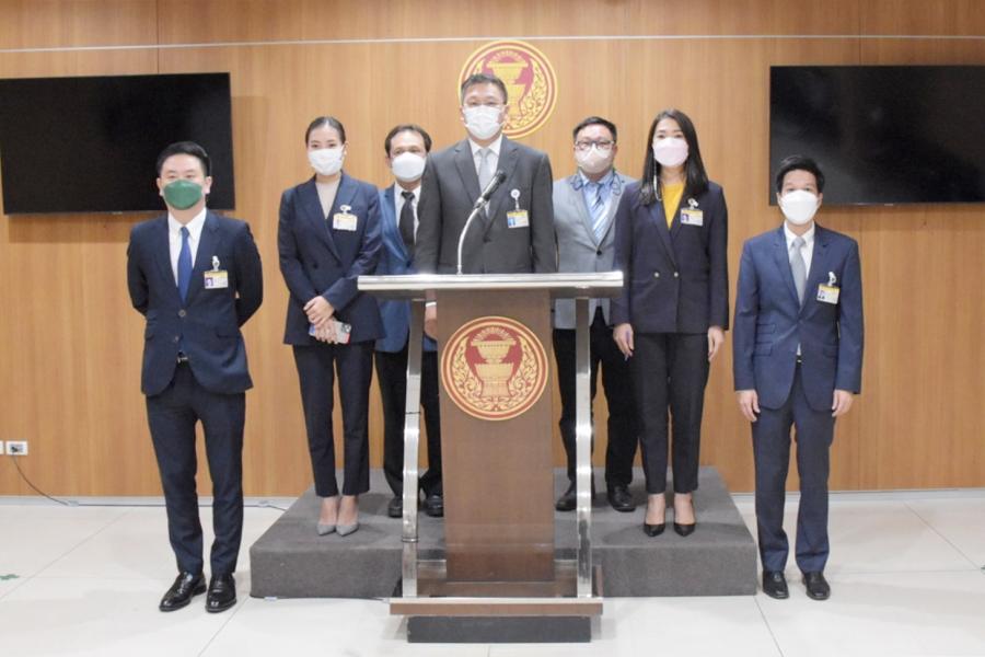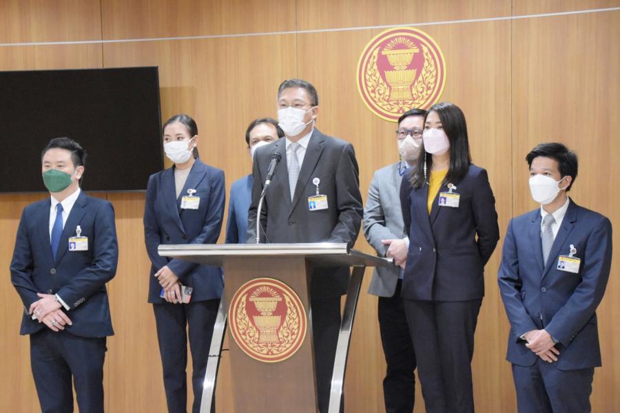 นายศราวุธ เพชรพนมพร ประธานคณะ กมธ.การต่างประเทศ และคณะ แถลงข่าว
