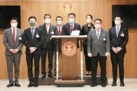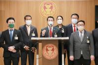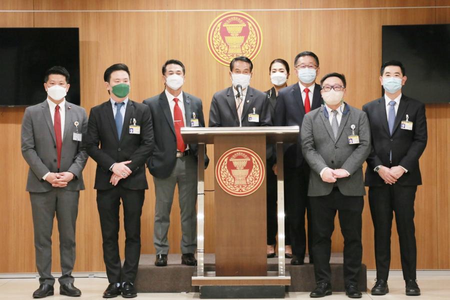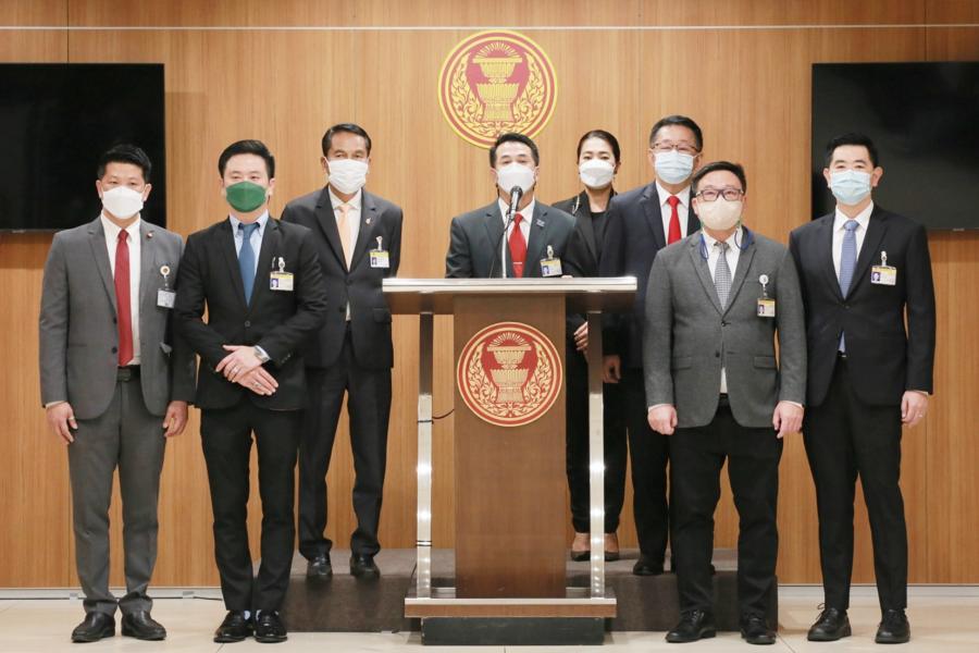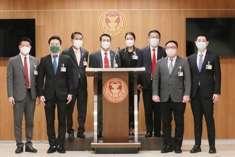 นายชลน่าน ศรีแก้ว หัวหน้าพรรคเพื่อไทย และคณะ อ่านแถลงการณ์ของพรรคเพื่อไทย