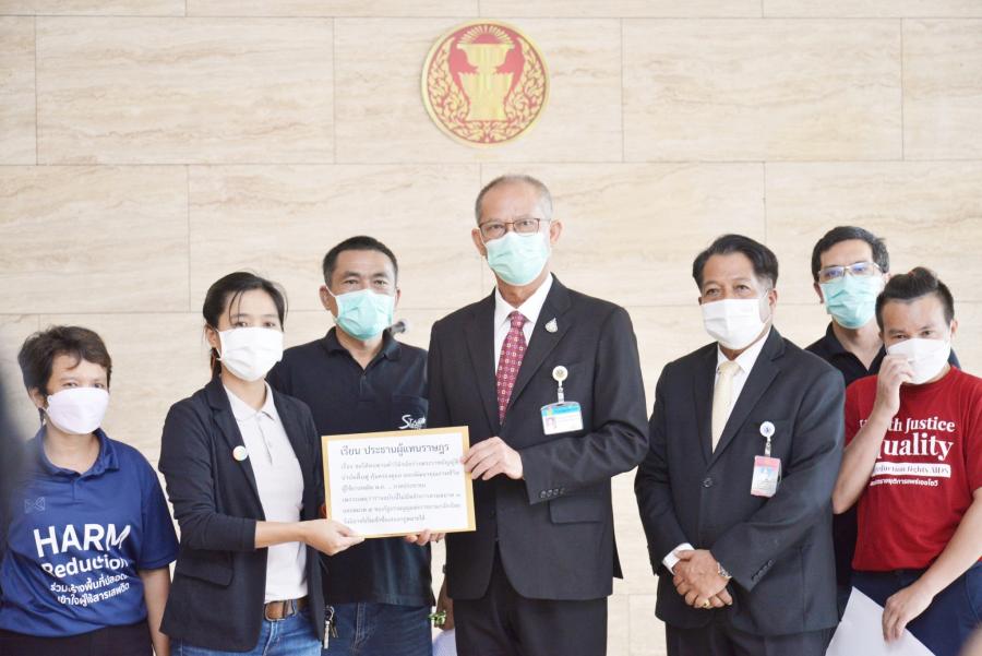 วันศุกร์ที่ 22 กรกฎาคม 2565 เวลา 10.20 นาฬิกา ณ จุดรับยื่นหนังสือ ชั้น 1 (โซนกลาง) อาคารรัฐสภา นายสมบูรณ์ อุทัยเวียนกุล  เลขานุการประธานสภาผู้แทนราษฎร  พร้อมด้วย นายวสันต์ นุ้ยภิรมย์ คณะทำงานทางการเมืองของประธานสภาผู้แทนราษฎร รับยื่นหนังสือจาก น.ส.ไพลิน  ดวงมาลา ผู้ริเริ่มเสนอร่างพระราชบัญญัติบำบัดฟื้นฟูคุ้มครองดูแล และพัฒนาคุณภาพชีวิตผู้ใช้ยาเสพติด (ภาคประชาชน) เพื่อให้ทบทวนคำวินิจฉัยว่าร่างพระราชบัญญัติดังกล่าวขัดต่อความสงบเรียบร้อยหรือศีลธรรมอันดีของประชาชน ตามมาตรา 25 ของรัฐธรรมนูญแห่งราชอาณาจักรไทย พ.ศ. 2560 หรือไม่ เพื่อให้ทางกลุ่มสามารถยื่นเสนอกฎหมายฉบับนี้ได้ เพื่อประโยชน์ต่อประชาชนที่เป็นผู้ติดยาเสพติดและต้องการกลับไปเป็นคนดีของสังคมต่อไป ผู้ริเริ่มเสนอร่างพระราชบัญญัติ ขอชี้แจงว่า ร่างกฎหมายฉบับดังกล่าวมีวัตถุประสงค์เพื่อเป็นการคุ้มครองสิทธิของผู้ใช้ยาเสพติด ที่อยู่บนหลักการทำงานเพื่อลดอันตรายจากยาเสพติด (Harm Reduction) อย่างเป็นรูปธรรม โดยยกเลิกการกำหนดให้ผู้ใช้ยาเสพติดเป็นผู้กระทำความผิดและอาจตกเป็นผู้ต้องหาในกระบวนการยุติธรรมทางอาญา ยกเลิกการบังคับตรวจปัสสาวะโดยเจ้าหน้าที่ตำรวจ หรือสำนักงานคณะกรรมการป้องกันและปราบปรามยาเสพติด (ป.ป.ส.) แต่ให้เป็นอำนาจของเจ้าหน้าที่สาธารณสุข ตรวจเพื่อรักษา ไม่ใช่ตรวจเพื่อจับกุม ให้สอดคล้องกับหลักการ ผู้ใช้ยาเสพติดไม่ใช่อาชญากร ผู้ติดยาเสพติดคือผู้ป่วย  และส่งเสริมให้ชุมชน องค์กรภาคประชาสังคมและภาคเอกชนเข้ามามีส่วนร่วมด้านการลดอันตรายจากยาเสพติด เพื่อให้ผู้ใช้ยาเสพติดเข้าถึงบริการด้านสุขภาพ และบริการทางสังคม โดยไม่ถูกเลือกปฏิบัติหรือถูกบังคับให้บำบัดรักษา เพื่อให้ผู้ใช้ยาเสพติดมีคุณภาพชีวิตที่ดี สามารถดำรงชีวิตอยู่ในสังคมได้อย่างมีศักดิ์ศรีความเป็นมนุษย์เช่นเดียวกับผู้อื่น ซึ่งเจตนารมณ์สอดคล้องกับรัฐธรรมนูญ หมวดสิทธิเสรีภาพของปวงชนชาวไทย และหมวดหน้าที่ของรัฐ และเป็นการส่งเสริม คุ้มครอง ปกป้อง เยียวยาสังคม ซึ่งประโยชน์มิได้ยังแต่เฉพาะในผู้ใช้ยาเสพติด แต่ยังรวมไปถึงครอบครัว ชุมชน และสังคม ทั้งยังสอดคล้องกับทิศทางการแก้ปัญหายาเสพติดในระดับสากลด้วย ซึ่งสิทธิในการเข้าชื่อเสนอกฎหมายโดยประชาชน เป็นสิทธิตามกฎหมาย จึงขอให้ประธานสภาผู้แทนราษฎรได้มีการทบทวนคำวินิจฉัยดังกล่าว เพื่อให้เป็นประโยชน์ต่อประชาชนที่เป็นผู้ติดยาเสพติดและต้องการกลับไปเป็นคนดีของสังคมต่อไป