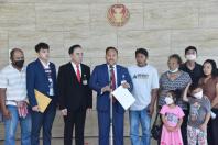 นายณัฐชา บุญไชยอินสวัสดิ์ ประธานคณะ กมธ.การพัฒนาการเมือง การสื่อสารมวลชน และการมีส่วนร่วมของประชาชน รับหนังสือจาก นายชลธี ช่างเรือนกุล ผู้แทนเครือข่ายสิทธิชุมชนพัฒนาภูเก็ต เพื่อขอให้แก้ไขปัญหาที่ดิน ที่อยู่อาศัยของชุมชนใน จ.ภูเก็ต อาทิ ชุมชนหลังเวทีสะพานหิน และชุมชนสระต้นโพธิ