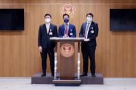 นายพิธา ลิ้มเจริญรัตน์ ส.ส.พรรคก้าวไกล และคณะ แถลงข่าวแสดงจุดยืนของพรรคก้าวไกลต่อการควบรวมธุรกิจระหว่าง บมจ.ทรู คอร์ปอเรชั่นและ บมจ. โทเทิ่ล แอ็คเซ็ส คอมมูนิเคชั่น (ดีแทค)