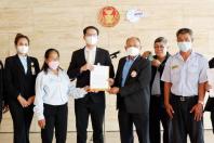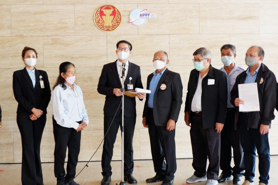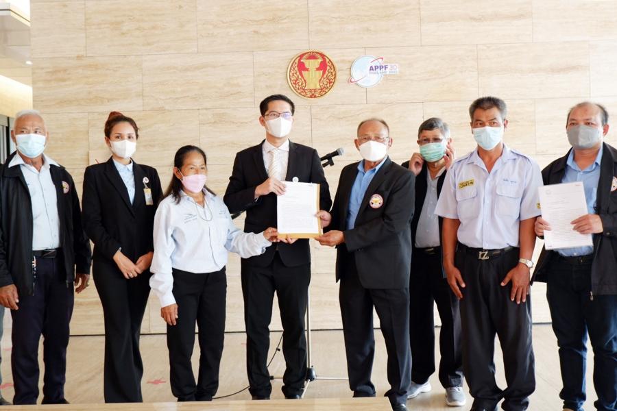 นายมงคลกิตติ์ สุขสินธารานนท์ ส.ส.พรรคไทยศรีวิไลย์ รับยื่นหนังสือจาก นายบุญเสริม สมพงษ์ นายกสมาคมผู้ขับขี่รถแท็กซี่สาธารณะ