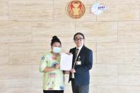 นายธัญวัจน์ กมลวงศ์วัฒน์ ส.ส.พรรคก้าวไกล รับยื่นหนังสือจาก น.ส.สุภัทรา บับภา