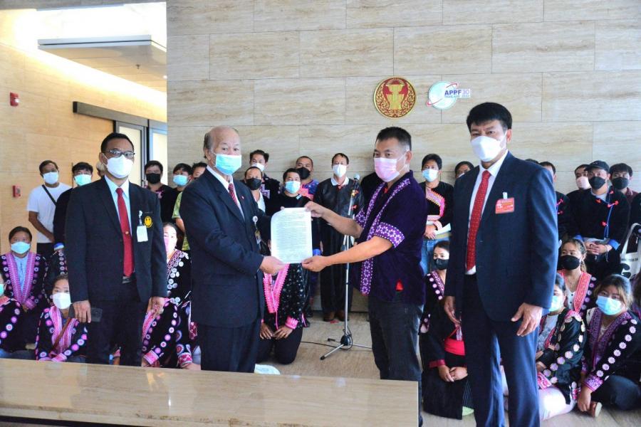 วันพุธที่ 7 กันยายน 2565 เวลา 09.20 นาฬิกา ณ จุดรับยื่นหนังสือ ชั้น 1 (โซนกลาง) อาคารรัฐสภา นายไพจิต ศรีวรขาน ประธานคณะ กมธ.การปกครอง รับยื่นหนังสือจาก นายเอกรินทร์ นทีไพรวัลย์ แกนนำม่อนแจ่ม ตัวแทนกลุ่มชาติพันธุ์ชาวไทยภูเขาเผ่าพื้นเมืองม่อนแจ่ม ต.แม่แรม อ.แม่ริม จ.เชียงใหม่ และคณะ เพื่อขอความเป็นธรรมเนื่องจากถูกละเมิดสิทธิและได้รับความเดือดร้อนจากการปฏิบัติหน้าที่ของเจ้าหน้าที่กรมป่าไม้ ในการบังคับใช้กฎหมายที่ไม่เป็นธรรม กรณีกรมป่าไม้ กระทรวงทรัพยากรธรรมชาติและสิ่งแวดล้อม ไม่ได้ดำเนินการเขตป่าสงวนแห่งชาติป่าแม่ริมเมื่อปี 2507 จ.เชียงใหม่ ให้เป็นไปตามระเบียบแนวทางข้อปฏิบัติและข้อเท็จจริง และไม่ได้ดำเนินการตามคำวินิจฉัยของประธานผู้ตรวจการแผ่นดิน มติคณะรัฐมนตรี และคำสั่ง คสช. ที่เกี่ยวข้อง ในพื้นที่ชุมชนหมู่บ้านและที่ทำกินม่อนแจ่ม จ.เชียงใหม่
