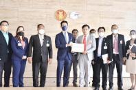 นายพิธา ลิ้มเจริญรัตน์ หัวหน้าพรรคก้าวไกล และ ส.ส.พรรคก้าวไกล รับยื่นหนังสือจาก นายดนุเดช ศิริวงษ์ตระกุล ประธานกลุ่มนักกฎหมายทนายความประชาชนสี่ภาค เพื่อขอให้ตรวจสอบคณะกรรมการผู้สูงอายุแห่งชาติ