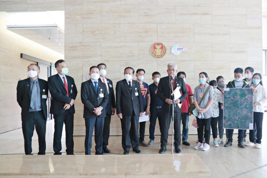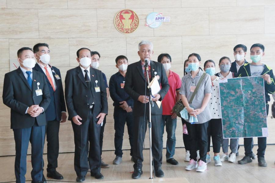 นายคำพอง เทพาคำ โฆษกคณะ กมธ.การเกษตรและสหกรณ์ และคณะ รับยื่นหนังสือจาก นางระพีพรรณ อรรควงษ์ ตัวแทนชาวบ้านในพื้นที่อ่างเก็บน้ำห้วยน้ำโสม ต.หนองแวง อ.น้ำโสม จ.อุดรธานี และคณะ เรื่อง ขอคัดค้านการสร้างอ่างเก็บน้ำห้วยน้ำโสม