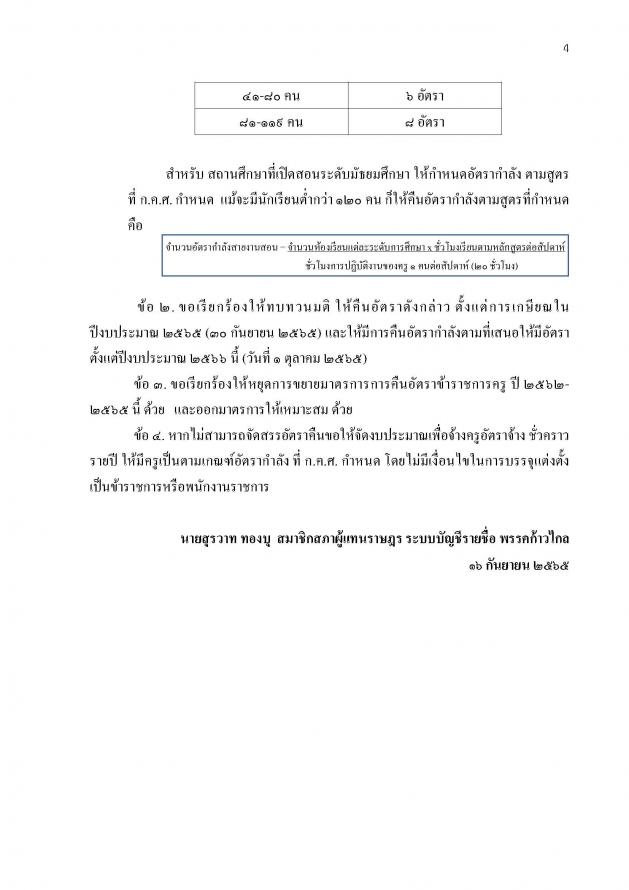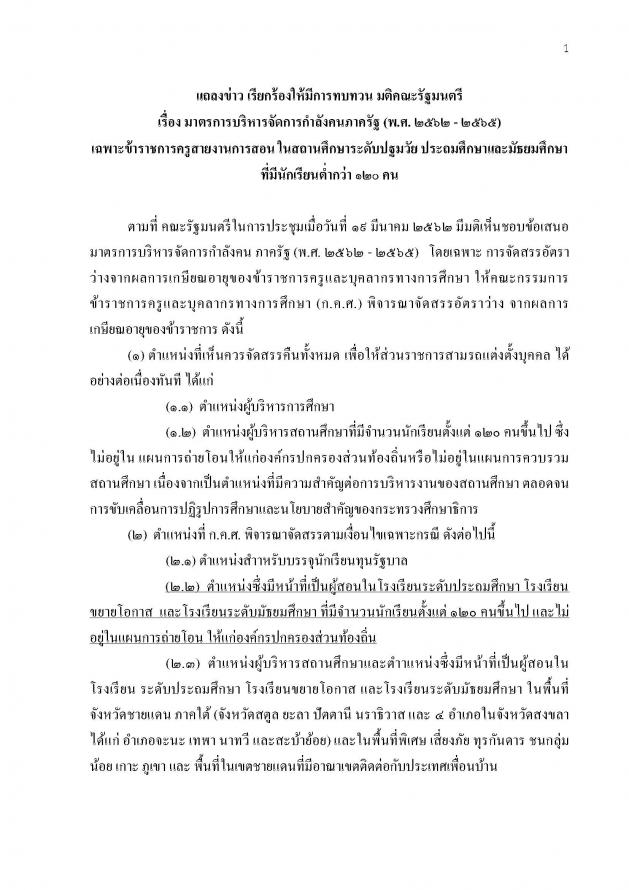 รศ.สุรวาท ทองบุ สมาชิกสภาผู้แทนราษฎร พรรคก้าวไกล และคณะ แถลงข่าว เรียกร้องให้มีการทบทวน มติคณะรัฐมนตรี เรื่อง มาตรการบริหารจัดการกำลังคนภาครัฐ (พ.ศ. 2562-2565) เฉพาะข้าราชการครูสายงานการสอน ในสถานศึกษาระดับปฐมวัย ประถมศึกษาและมัธยมศึกษา ที่มีนักเรียนต่ำกว่า 120 คน