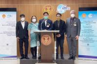 นายกษิดิ์เดช ชุติมันต์ กมธ.วิสามัญพิจารณาร่าง พ.ร.บ.คู่ชีวิต พ.ศ. .... พร้อมด้วย นายแทนคุณ จิตต์อิสระ โฆษกคณะ กมธ. และคณะ แถลงข่าวผลการพิจารณาของคณะ กมธ.