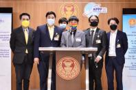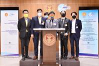 นายธัญวัจน์ กมลวงศ์วัฒน์ รองประธานคณะ กมธ.วิสามัญพิจารณาร่าง พ.ร.บ.คู่ชีวิต พ.ศ. .... คนที่สอง พร้อมด้วย น.ส.ณธีภัสร์ กุลเศรษฐสิทธิ์ กมธ. นายแทนคุณ จิตต์อิสระ และนายชานันท์ ยอดหงษ์ โฆษกคณะ กมธ. และคณะ ร่วมกันแถลงข่าว