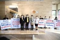 นายณัฐกานต์ ชูชนะ เลขานุการคณะทำงานทางการเมืองของประธานสภาผู้แทนราษฎร รับยื่นหนังสือจากนายดิเรก จอมทอง ประธานเครือข่ายตื่นรู้สู้ภัยสารเสพติดสุขภาพจิตภาคประชาชน และนางเยาวเรศ คำมะนาด นายกสมาคมนักสังคมสงเคราะห์ทางการแพทย์ไทย ผู้แทนเครือข่ายสหวิชาชีพสุขภาพผู้รับผิดชอบบำบัดสารเสพติดสุขภาพจิต และเครือข่ายตื่นรู้สู้ภัยสารเสพติดสุขภาพจิตภาคประชาชน