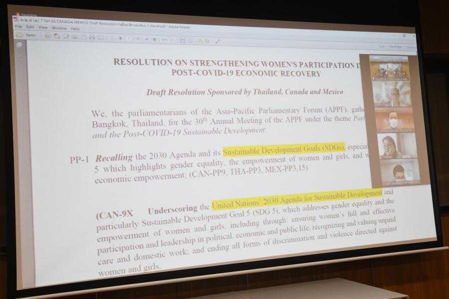 ประชุมคณะอนุกรรมการด้านสมาชิกรัฐสภาสตรีในการประชุมประจำปีรัฐสภาภาคพื้นเอเชียและแปซิฟิก ครั้งที่ 30 ครั้งที่ 7/2565 ผ่านสื่ออิเล็กทรอนิกส์
