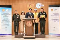 นายแทนคุณ จิตต์อิสระ เลขานุการคณะทำงานทางการเมืองของประธานสภาผู้แทนราษฎร พร้อมด้วย นายฐิติ ชัยนาม ประธานโครงการสี่เสาหลัก และคณะ แถลงข่าว