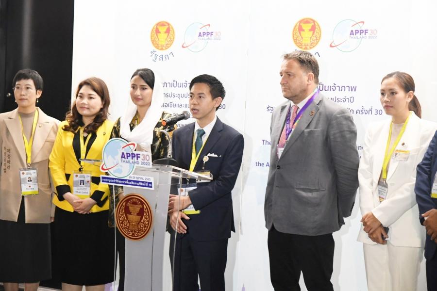 วันพฤหัสบดีที่ 27 ตุลาคม 2565 เวลา 12.00 นาฬิกา ณ จุดแถลงข่าว ชั้น 4 (โซนกลาง) อาคารรัฐสภา นายอิสระ เสรีวัฒนวุฒิ สมาชิกสภาผู้แทนราษฎร ในฐานะประธานกรรมการบริหารชมรมยุวสมาชิกรัฐสภาไทย พร้อมคณะ แถลงข่าวต่อสื่อมวลชน ภายหลังเสร็จสิ้นการอภิปรายโต๊ะกลมของรัฐสภาเรื่อง “การมีส่วนร่วมของยุวสมาชิกรัฐสภาเอเชียและแปซิฟิกเพื่อไม่ทิ้งใครไว้ข้างหลัง” โดยกล่าวว่า รัฐสภาไทยเป็นเจ้าภาพจัดการประชุมประจำปีรัฐสภาภาคพื้นเอเชียและแปซิฟิก ครั้งที่ 30 ระหว่างวันที่ 26 – 29 ต.ต. 65 ซึ่งวันนี้ (27 ต.ค. 65) เป็นวันที่สอง และจะมีการประชุมต่อเนื่องไปถึงวันพรุ่งนี้ (28 ต.ค. 65) โดยจะมีพิธีปิดในช่วงเย็น จากนั้นในวันที่ 29 ต.ค. 65 จะนำสมาชิกรัฐสภาจากทุกประเทศไปสัมผัสวัฒนธรรมไทยที่วัดพระศรีรัตนศาสดารามและพิพิธภัณฑ์ต่าง ๆ สำหรับการประชุมในวันนี้จะเริ่มแยกการประชุมในห้องต่าง ๆ ทั้งหมด 4 ห้อง ได้แก่ 1. ด้านการเมืองและความมั่นคง 2. ด้านเศรษฐกิจและการค้า 3. ด้านความร่วมมือในภูมิภาคฯ และ 4. ด้านสมาชิกรัฐสภาสตรี ซึ่งประชุมไปแล้วเมื่อวานนี้โดย นายชวน หลีกภัย ประธานรัฐสภา ได้ให้เกียรติร่วมเป็นสักขีพยานในการเปิดประชุมและเมื่อสักครู่ได้มีการประชุมในห้องที่ 5 ซึ่งเป็นครั้งแรกที่ประเทศไทยในฐานะเจ้าภาพได้ริเริ่มการประชุมโต๊ะกลมนี้ขึ้น คือ การอภิปรายโต๊ะกลมของยุวสมาชิกรัฐสภา หรือ Young Parliamentarians Roundtable Discussion โดยนายชวน หลีกภัย ประธานรัฐสภา ได้ให้เกียรติกล่าวเปิดประชุม ซึ่งได้เชิญเพื่อนสมาชิกทุกประเทศที่มาร่วมประชุมที่มีอายุน้อยกว่า 45 ปี ตามข้อกำหนดของสหภาพรัฐสภา มาร่วมพูดคุยกัน และได้รับความร่วมมือจากโครงการพัฒนาแห่งสหประชาชาติ หรือ UNDP โดยได้เชิญเยาวชนจากประเทศสมาชิกมาสะท้อนสิ่งที่ต้องการเพื่อให้ได้รับการตอบสนองจากสมาชิกรัฐสภาแต่ละประเทศ หลังจากนั้นสมาชิกรัฐสภาจาก 20 กว่าประเทศ ได้แลกเปลี่ยนความคิดเห็นว่าจะทำอย่างไรเพื่อให้ภูมิภาคเอเชียและแปซิฟิกของเราเป็นภูมิภาคที่เข้มแข็งและนำไปสู่เสถียรภาพ ทั้งด้านสังคม เศรษฐกิจ และการเมือง โดยในวันพรุ่งนี้ (28 ต.ค. 65) จะมีการออกแถลงการณ์ร่วมของประเทศสมาชิกต่อไป