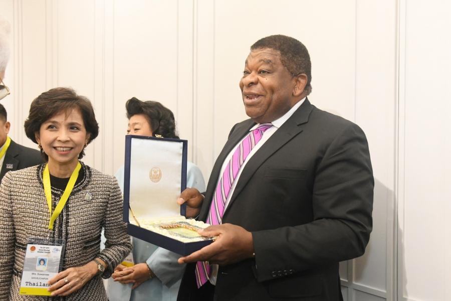 จากนั้น ในเวลา 12.30 นาฬิกา ณ ห้องจัดเลี้ยง หมายเลข 103 คณะกรรมการบริหารหน่วยประจำชาติไทยในสหภาพรัฐสภาได้เป็นเจ้าภาพเลี้ยงอาหารกลางวันเพื่อเป็นเกียรติแก่เลขาธิการสหภาพรัฐสภา ในโอกาสนี้ด้วย