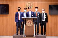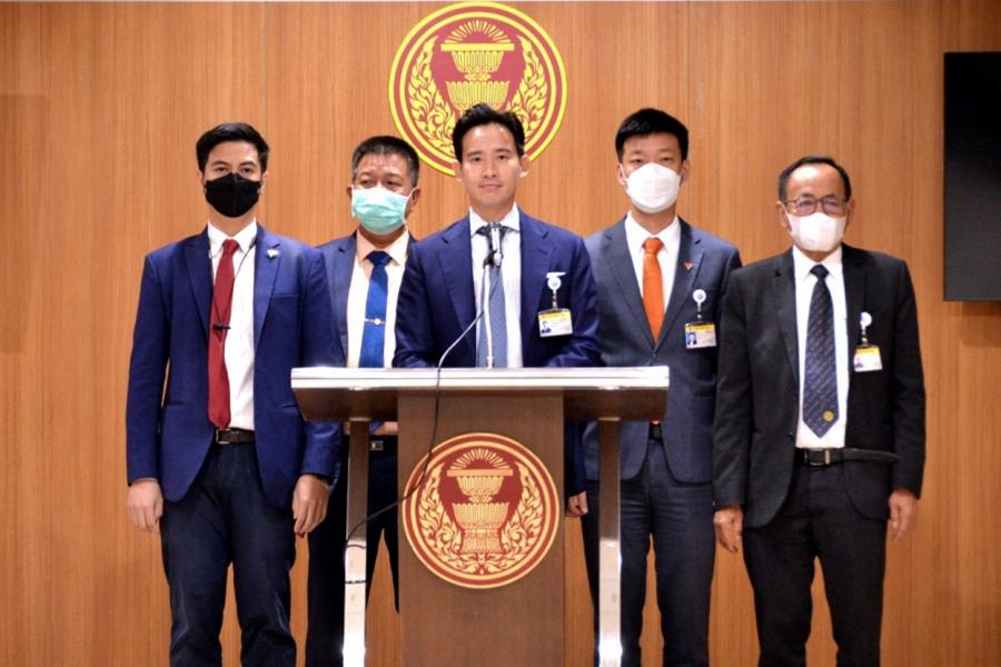 นายพิธา ลิ้มเจริญรัตน์ หัวหน้าพรรคก้าวไกล พร้อมด้วย ส.ส.พรรคก้าวไกล แถลงข่าว