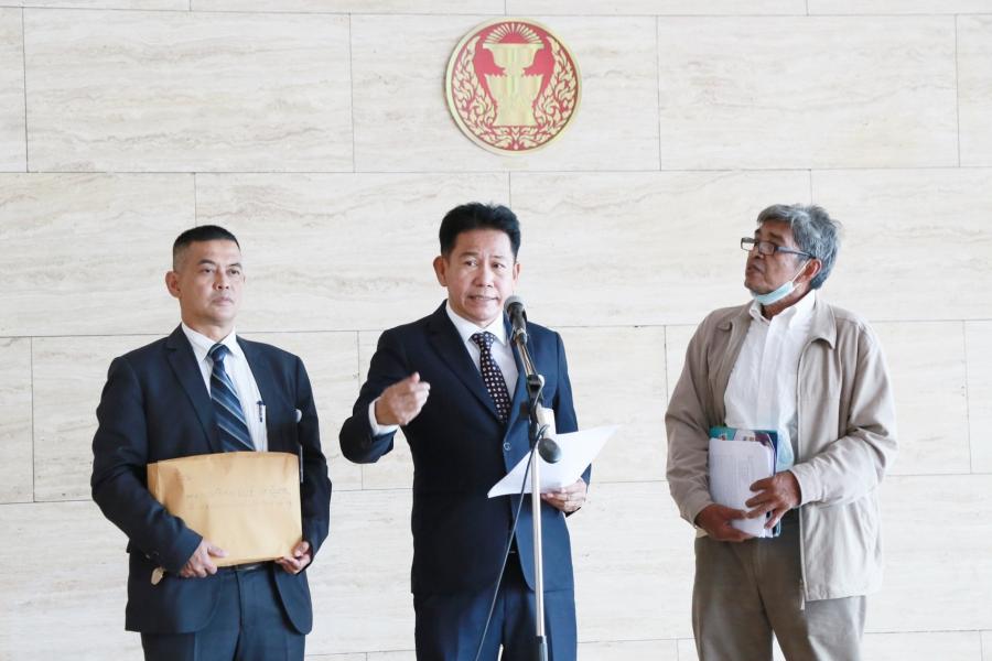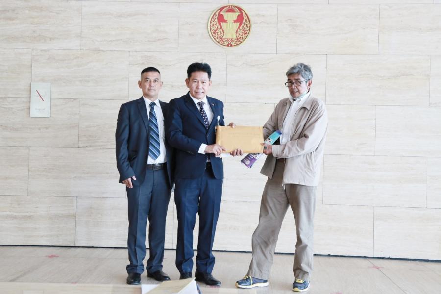 นายธีรัจชัย พันธุมาศ โฆษกคณะ กมธ.การป้องกันและปราบปรามการทุจริตประพฤติมิชอบ รับยื่นหนังสือจาก นายสุชาติ รอดคำ ประธานศูนย์สาธิตวิสาหกิจชุมชนเครือข่ายเพื่อเกษตรกรใหม่