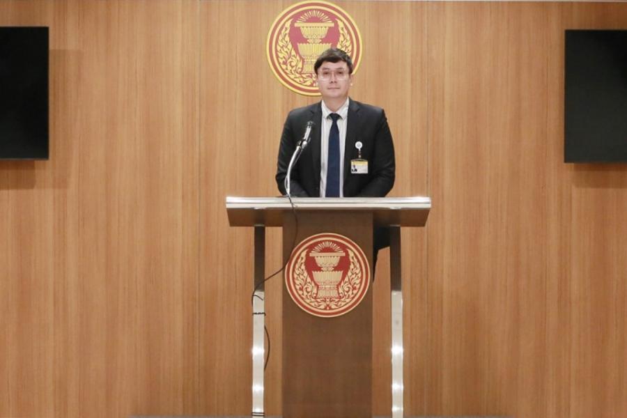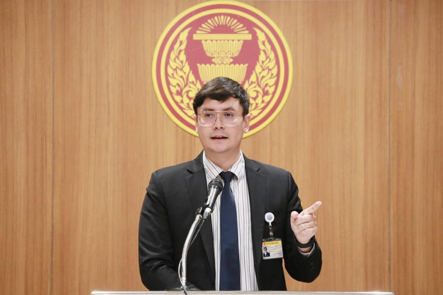 นายรังสิมันต์ โรม ส.ส.พรรคก้าวไกล แถลงข่าวเรื่องข้อมูลการทุจริตงบซ่อมบำรุงของกองบินตำรวจ