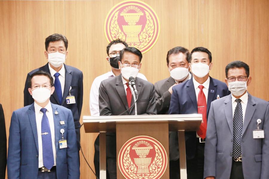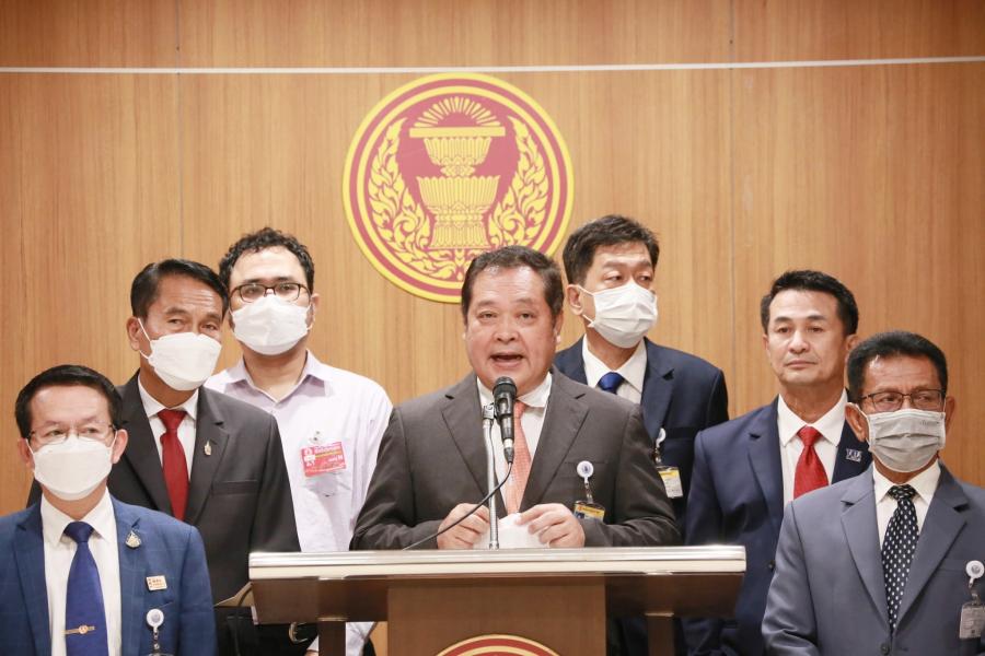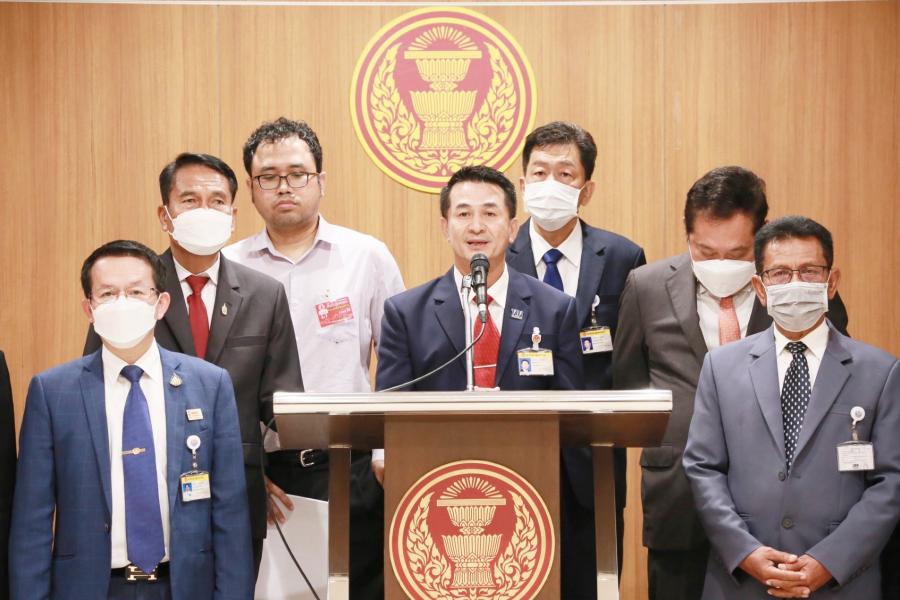 นายชลน่าน ศรีแก้ว ผู้นำฝ่ายค้านในสภาผู้แทนราษฎร พร้อมด้วย นายสุทิน คลังแสง ส.ส.พรรคเพื่อไทย นายนิคม บุญวิเศษ ส.ส.พรรคพลังปวงชนไทย นายณัฐวุฒิ บัวประทุม ส.ส.พรรคก้าวไกล นายสงคราม กิจเลิศไพโรจน์ ส.ส.พรรคเพื่อชาติ พันตำรวจเอก ทวี สอดส่อง นายอับดุลอายี สาแม็ง ส.ส.พรรคประชาชาติ และนายวิรัตน์ วรศสิริน ส.ส.พรรคเสรีรวมไทย ร่วมกันแถลงข่าวกรณีขอให้ศาลปกครองคุ้มครองชั่วคราว