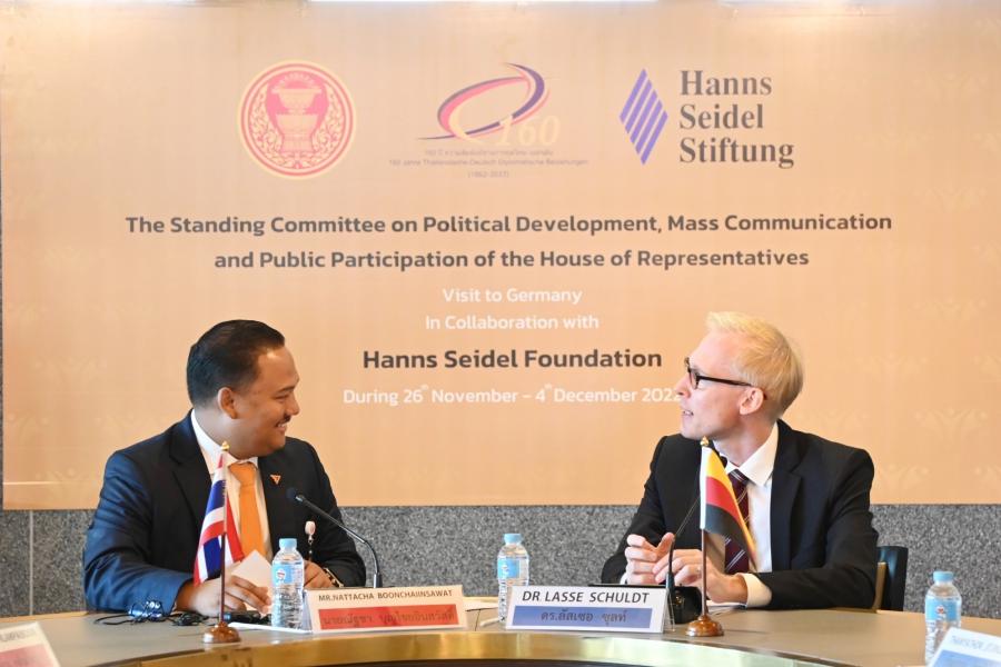 ประธานคณะ กมธ.การพัฒนาการเมือง การสื่อสารมวลชน และการมีส่วนร่วมของประชาชน และคณะ ประชุมร่วมกับ อาจารย์ประจำคณะนิติศาสตร์ มหาวิทยาลัยธรรมศาสตร์ ผู้แทนมูลนิธิฮันส์ ไซเดล (Hanns Seidel Foundation) สหพันธ์สาธารณรัฐเยอรมนีประจำประเทศไทย