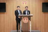 นายสฤษฏ์พงษ์ เกี่ยวข้อง ส.ส.พรรคภูมิใจไทย พร้อมด้วย นายคารม พลพรกลาง ส.ส.พรรคก้าวไกล ร่วมกันแถลงข่าว