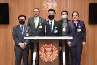 นายบัญญัติ เจตนจันทร์ พร้อมด้วย นายสาทิตย์ วงศ์หนองเตย ส.ส. พรรคประชาธิปัตย์ และคณะ แถลงข่าว