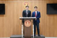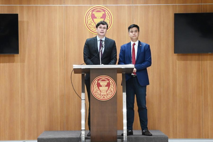 นายรังสิมันต์ โรม ส.ส.พรรคก้าวไกล และนายพริษฐ์ วัชรสินธุ ผู้ร่วมเสนอร่างรัฐธรรมนูญแห่งราชอาณาจักรไทย แก้ไขเพิ่มเติม (ฉบับที่ ..) พุทธศักราช .... แถลงข่าวเกี่ยวกับการลงมติร่างรัฐธรรมนูญแห่งราชอาณาจักรไทย แก้ไขเพิ่มเติม (ฉบับที่ ..) พุทธศักราช .... ในการประชุมร่วมกันของรัฐสภา