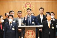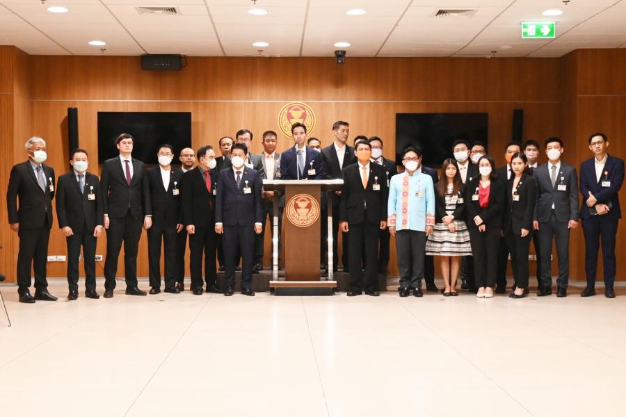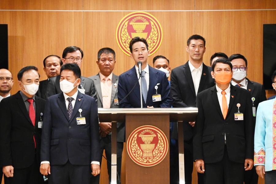 นายพิธา ลิ้มเจริญรัตน์ ส.ส.พรรคก้าวไกล นายธนาธร จึงรุ่งเรืองกิจ และคณะผู้เสนอร่างรัฐธรรมนูญแห่งราชอาณาจักรไทย แก้ไขเพิ่มเติม (ฉบับที่ ..) พุทธศักราช .... (แก้ไขเพิ่มเติมหมวด14 มาตรา 249 มาตรา 250 มาตรา 251 มาตรา 252 มาตรา 253 มาตรา 254 เพิ่มมาตรา 254/1 มาตรา 254/2 มาตรา 254/3 มาตรา 254/4 มาตรา 254/5 และมาตรา 254/6) ร่วมกันแถลงข่าว