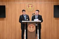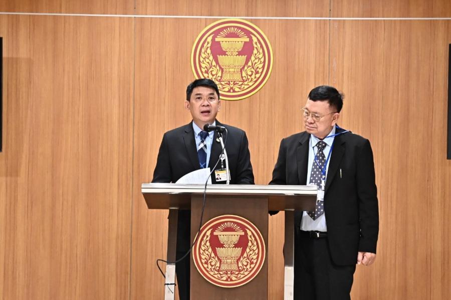 นายวิรัช พันธุมะผล และนายสฤษฏ์พงษ์ เกี่ยวข้อง ส.ส.พรรคภูมิใจไทย แถลงข่าวชี้แจงขั้นตอนการพิจารณาร่าง พ.ร.บ.กัญชา กัญชง พ.ศ. .