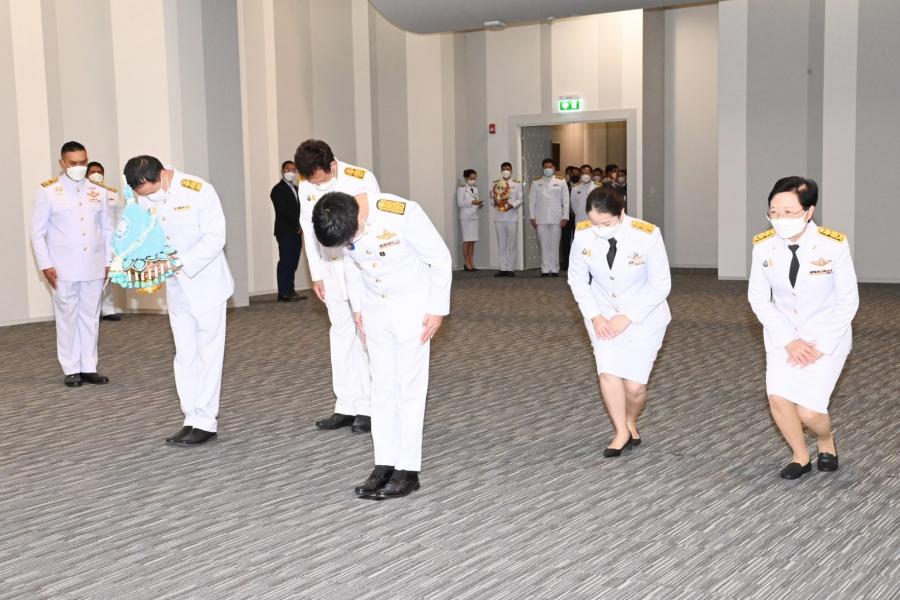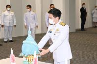 นายอิสระ เสรีวัฒนวุฒิ สมาชิกสภาผู้แทนราษฎร พรรคประชาธิปัตย์ วางพานประดับพุ่มดอกไม้ถวายบังคมพระรูปต้นแบบพระบาทสมเด็จพระปกเกล้าเจ้าอยู่หัว ในนาม พรรคประชาธิปัตย์