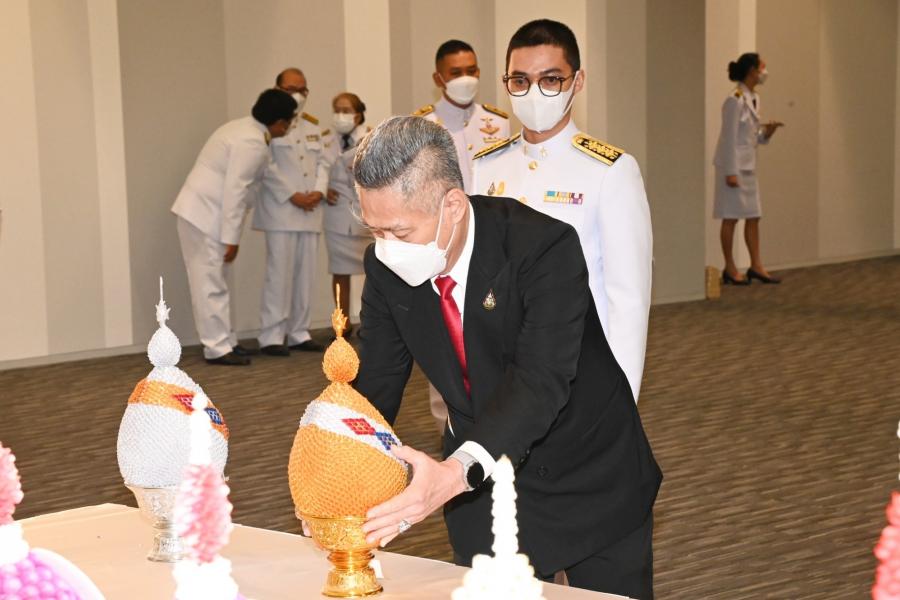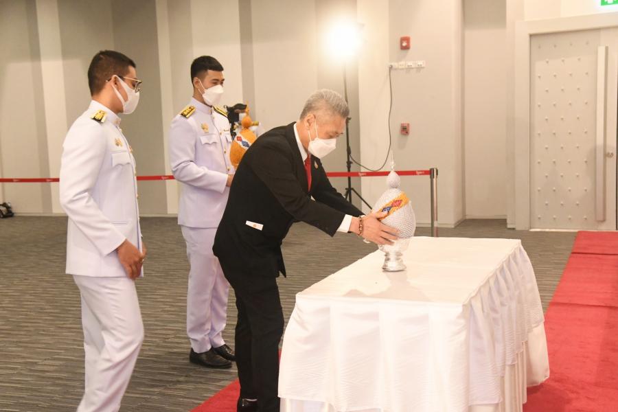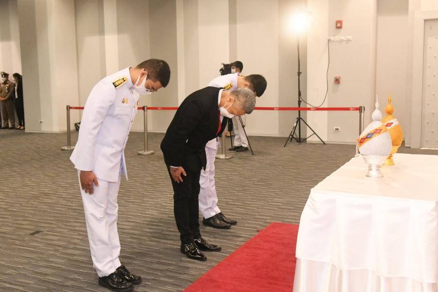 นายเกริกมนตรี รุจโสตถิรพัฒน์ กรรมการบริหารพรรคเพื่อชาติ วางพานประดับพุ่มดอกไม้ถวายบังคมพระรูปต้นแบบพระบาทสมเด็จพระปกเกล้าเจ้าอยู่หัว ในนาม พรรคเพื่อชาติ