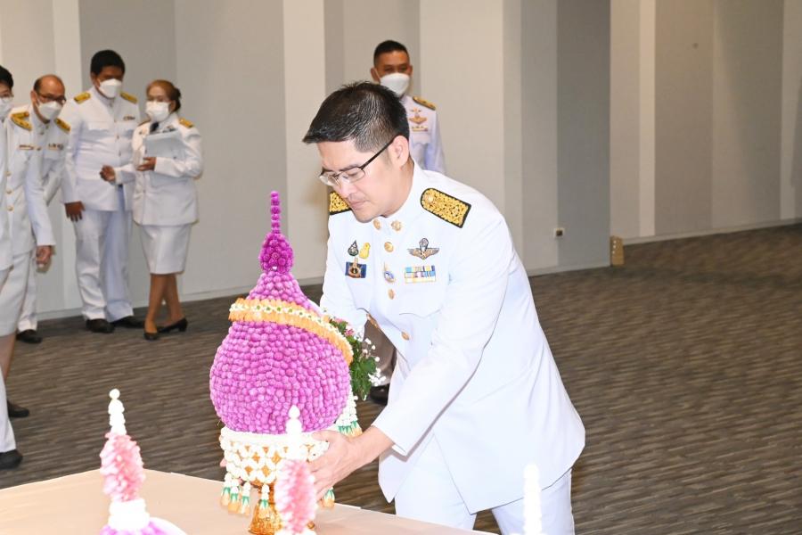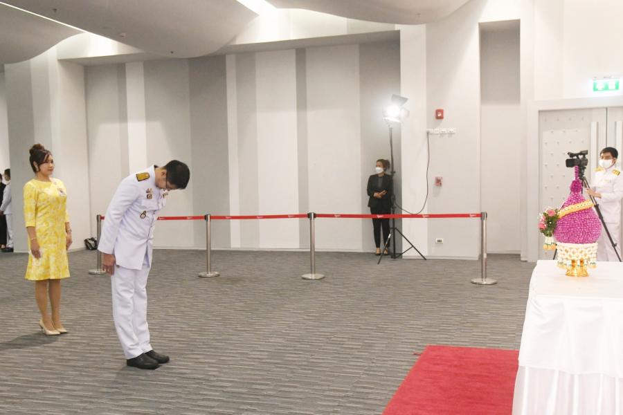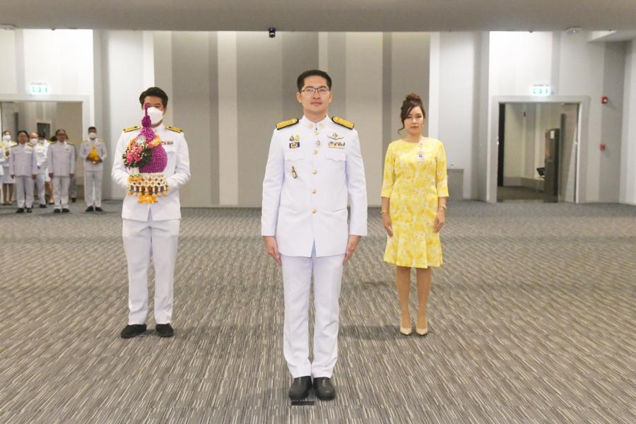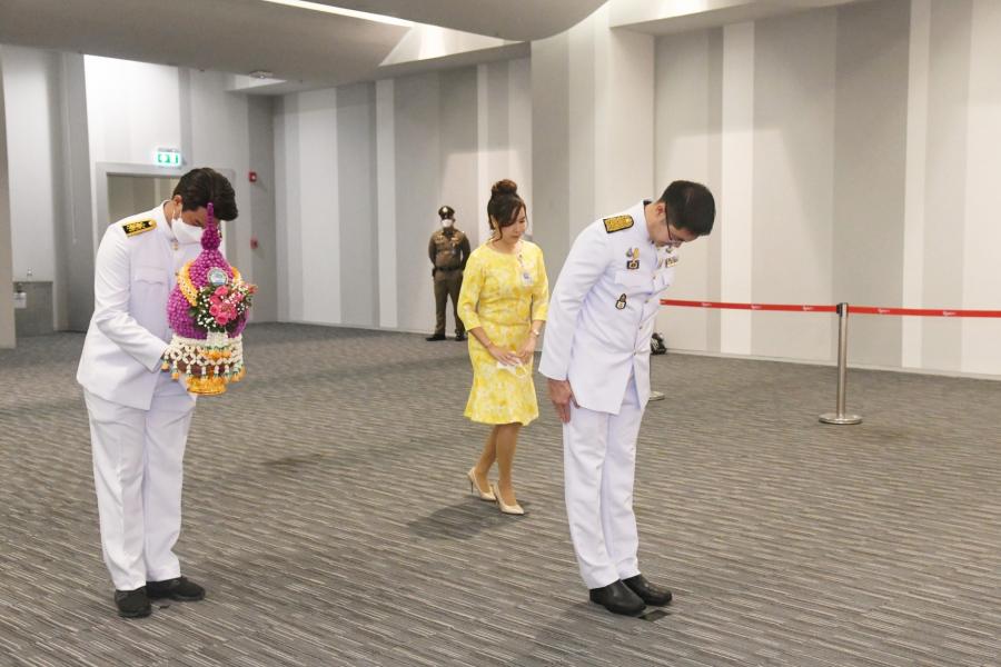 นายมงคลกิตติ์ สุขสินธารานนท์ สมาชิกสภาผู้แทนราษฎร วางพานประดับพุ่มดอกไม้ถวายบังคมพระรูปต้นแบบพระบาทสมเด็จพระปกเกล้าเจ้าอยู่หัว ในนาม พรรคไทยศรีวิไลย์