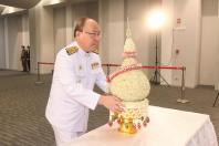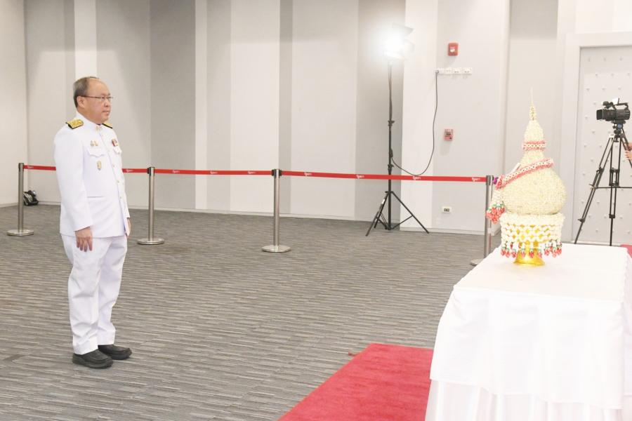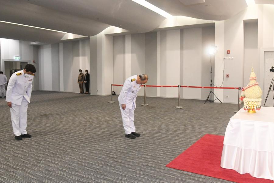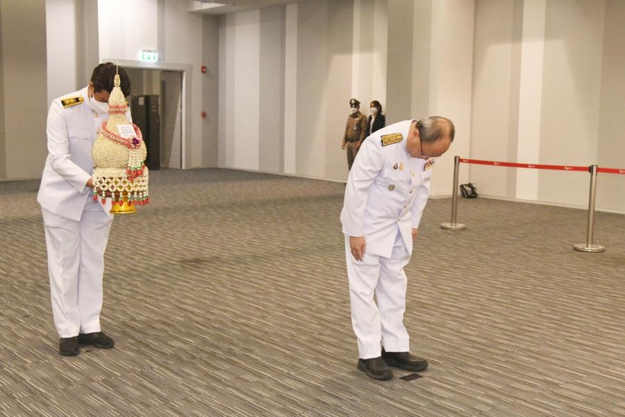 นายมนูญ สิวาภิรมย์รัตน์ สมาชิกสภาผู้แทนราษฎร วางพานประดับพุ่มดอกไม้ถวายบังคมพระรูปต้นแบบพระบาทสมเด็จพระปกเกล้าเจ้าอยู่หัว ในนาม พรรคเศรษฐกิจใหม่