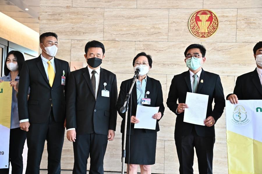 น.ส.ผ่องศรี ธาราภูมิ โฆษกประธานสภาผู้แทนราษฎร รับยื่นหนังสือจาก นายอเนก ทิมทับ เลขาธิการสภาการสาธารณสุขชุมชน พร้อมด้วยกรรมการสภาการสาธารณสุขชุมชน และคณะ