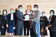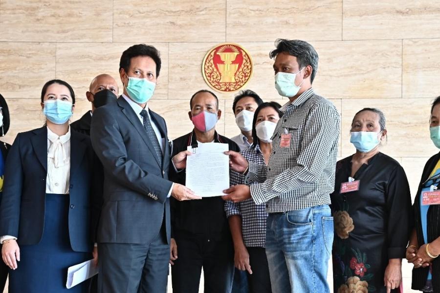 นพ.สุกิจ อัถโถปกรณ์ ที่ปรึกษาประธานสภาผู้แทนราษฎร รับยื่นหนังสือจากนายเทพพล เครื่องจันทร์ ประธานเครือข่ายชุมชนเขตพญาไท