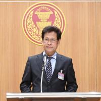 นพ.สุกิจ อัถโถปกรณ์ ที่ปรึกษาประธานสภาผู้แทนราษฎร แถลงข่าวเกี่ยวกับกรณีการจัดหาอาหารและเครื่องดื่มสำหรับสมาชิกสภาผู้แทนราษฎร