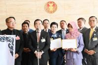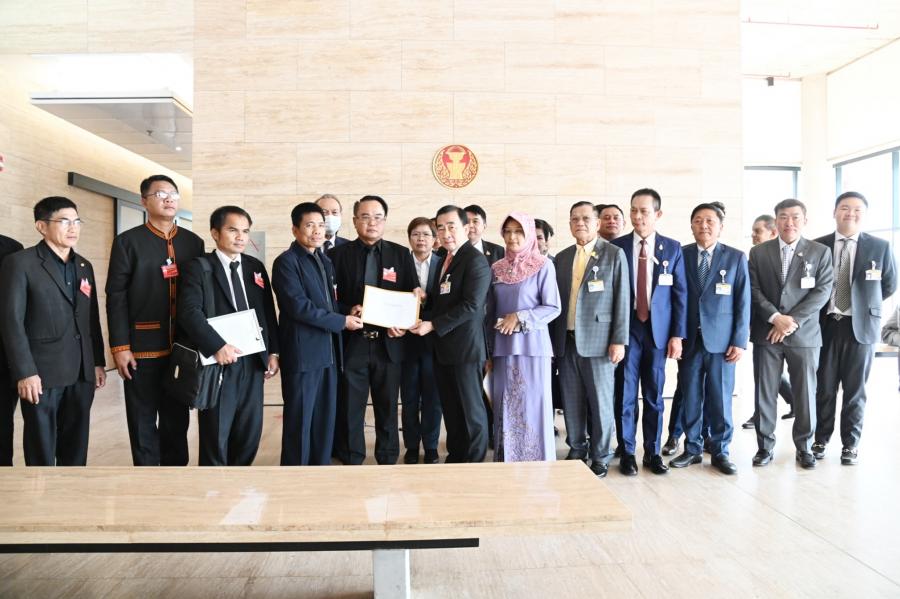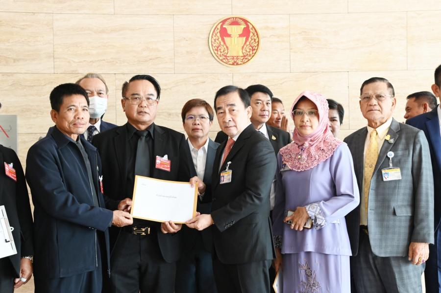 นายสรอรรถ กลิ่นประทุม ส.ส.พรรคภูมิใจไทย และคณะ รับยื่นหนังสือจาก นายเศรษฐศิษฏ์ ณุวงค์ศรี ประธานเครือข่ายคนรักษ์อาชีวศึกษาแห่งประเทศไทย และคณะ