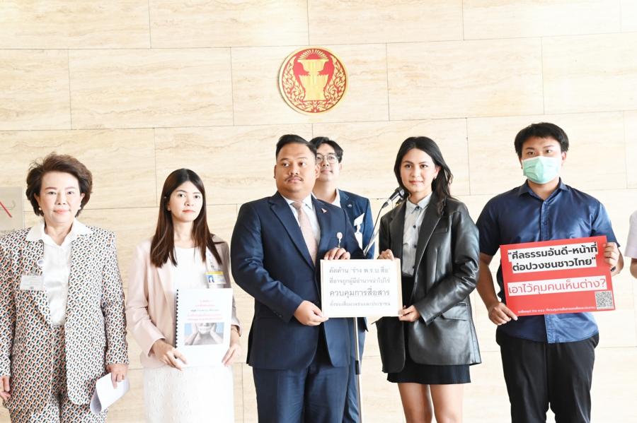 วันอังคารที่ 24 มกราคม 2566 เวลา 13.00 นาฬิกา ณ จุดรับยื่นหนังสือ ชั้น 1(โซนกลาง) อาคารรัฐสภา นายณัฐชา บุญไชยอินสวัสดิ์ ประธานคณะ กมธ.การพัฒนาการเมือง การสื่อสารมวลชน และ การมีส่วนร่วมของประชาชน รับยื่นหนังสือจาก น.ส. วศินี พบูประภาพ ผู้แทนเครือข่ายวิชาชีพสื่อมวลชน เรื่อง ขอคัดค้านร่างพระราชบัญญัติส่งเสริมจริยธรรมและมาตรฐานวิชาชีพสื่อมวลชน พ.ศ. .... พร้อมแนบรายชื่อผู้ร่วมคัดค้านจำนวน 2,000 รายชื่อ ตามที่คณะรัฐมนตรีได้มีมติผ่านร่างพระราชบัญญัติส่งเสริมจริยธรรมและมาตรฐานวิชาชีพสื่อมวลชน พ.ศ. .... เมื่อวันที่ 11 มกราคม 2565 แล้วนั้น คาดว่าจะนำเข้าสู่การประชุมร่วมกันของรัฐสภาในเร็ว ๆ นี้ โดยมีบันทึกหลักการและเหตุผลว่า สมควรกำหนดให้มีองค์กรเพื่อทำหน้าที่คุ้มครองเสรีภาพของบุคคลซึ่งประกอบวิชาชีพสื่อมวลชนตามที่รัฐธรรมนูญแห่งราชอาณาจักรไทยบัญญัติรับรองและกำหนดให้มีการส่งเสริมจริยธรรมสื่อมวลชนเพื่อให้การทำหน้าที่ตามมาตรฐานวิชาชีพเป็นไปอย่างเหมาะสม" ซึ่งมีสาระสำคัญของร่างกฎหมายดังกล่าว คือ กำหนดให้มีองค์กรชื่อ สภาวิชาชีพสื่อมวลชน ขึ้นมาทำหน้าที่กำหนดมาตรฐานจริยธรรมของสื่อมวลชน พร้อมกำกับดูแลการทำงานของสื่อมวลชนให้เป็นไปตามมาตรฐานจริยธรรมนั้น โดยมีคณะกรรมการสภาวิชาชีพสื่อมวลชนที่ประกอบด้วยตัวแทนองค์กรวิชาชีพสื่อในปัจจุบันจำนวน 5 คน ผู้ทรงคุณวุฒิที่มีความเชี่ยวชาญและมีประสบการณ์ด้านต่าง ๆ อีกจำนวน 5 คน ซึ่งผ่านการคัดเลือกโดยคณะกรรมการสรรหา พร้อมกับผู้จัดการกองทุนพัฒนาสื่อปลอดภัยและสร้างสรรค์ ที่เป็นกรรมการโดยตำแหน่ง อีกจำนวน 1 คน รวมจำนวนทั้งสิ้น 11 คน ทั้งนี้ นักวิชาชีพและนักวิชาการสื่อมวลชน ได้พิจารณาแล้วเห็นพ้องกันว่า ร่างกฎหมายดังกล่าวจะส่งผลกระทบต่อสิทธิเสรีภาพในการรายงานข่าวสารของสื่อมวลชน รวมถึงสิทธิเสรีภาพในการเข้าถึงข่าวสารของประชาชน พร้อมกันนี้ยังได้แสดงความกังวลต่อเนื้อหาในร่างกฎหมายที่ผ่านคณะรัฐมนตรีแล้ว ดังนี้