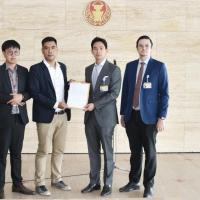 นายพิธา ลิ้มเจริญรัตน์ ส.ส.พรรคก้าวไกล และคณะ รับยื่นหนังสือจากนายกฤช ศิลปชัย ตัวแทนผู้ได้รับความเดือดร้อนใน จ.ระยอง เพื่อขอให้ตรวจสอบข้อเท็จจริงกรณีการเรียกเก็บเงินค่ารถโดยสารบนเกาะเสม็ด จ.ระยอง