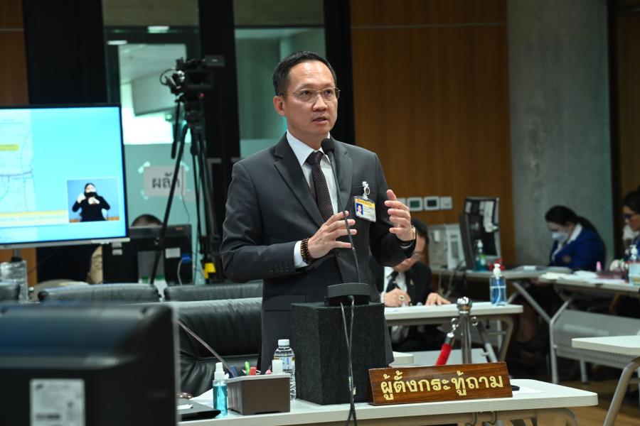 ถาม รัฐมนตรีว่าการกระทรวงคมนาคมโดยมี นายอธิรัฐ รัตนเศรษฐ รัฐมนตรีช่วยว่าการกระทรวงคมนาคม เป็นผู้ตอบกระทู้ถาม