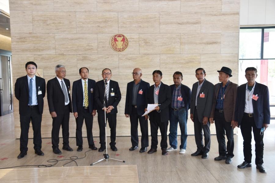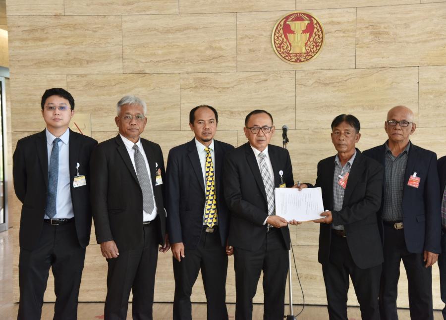 นายสมชาย ฝั่งชลจิตร รองประธานคณะ กมธ.การที่ดิน ทรัพยากรธรรมชาติและสิ่งแวดล้อม คนที่สี่ และคณะ รับยื่นหนังสือจาก นายวิชัย รัตนมณี ประธานผู้ก่อตั้งชุมชนสร้างสรรค์พัฒนาถาวรเพื่อที่ดินทำกิน บ้านทุ่งทับควาย