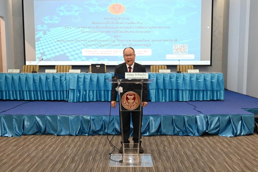 สำหรับการสัมมนาครั้งดังกล่าวจัดโดยคณะกรรมาธิการความมั่นคงแห่งรัฐ กิจการชายแดนไทย ยุทธศาสตร์ชาติ มีวัตถุประสงค์เพื่อรับฟังความคิดเห็นจากภาครัฐ ภาคเอกชน และประชาชนทั่วไปเกี่ยวกับการส่งเสริม และสนับสนุนอุตสาหกรรมโดรนหรือยานไร้คนขับเพื่อขับเคลื่อนยุทธศาสตร์ชาติไปสู่การปฏิบัติ พร้อมทั้งมีการแลกเปลี่ยนเรียนรู้ก้าวต่อไปของการพัฒนาอุตสาหกรรมโดรนหรืออากาศยานไร้คนขับทั้งในบริบทการกำกับดูแลควบคู่ไปกับการส่งเสริม พัฒนา การประยุกต์ใช้ ตลอดจนการสร้างมาตรฐานของอุตสาหกรรมดังกล่าว มาตรฐานอากาศยานไร้คนขับ และผู้บังคับอากาศยานไร้คนขับให้มีความรู้ ความชำนาญ รวมไปถึงการนำระบบจัดการจราจรทางอากาศของโดรนมาใช้งานเพื่อเพิ่มความปลอดภัยในการใช้งานอากาศยานไร้คนขับ โดยมีกลุ่มเป้าหมาย ประกอบด้วย หน่วยงานภาครัฐ และภาคเอกชนที่เกี่ยวข้องกับโดรนหรืออากาศยาน ภาคประชาสังคม สื่อมวลชน ประชาชน และผู้สนใจทั่วไป คณะกมธ.ความมั่นคงแห่งรัฐ กิจการชายแดนไทย ยุทธศาสตร์ชาติ และการปฏิรูปประเทศ สภาผู้แทนราษฎรและคณะอนุกรรมาธิการพิจารณาศึกษาการขับเคลื่อนยุทธศาสตร์ชาติ เรื่อง ยานยนต์ไฟฟ้าดัดแปลง จำนวน 200 คน