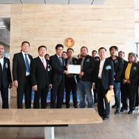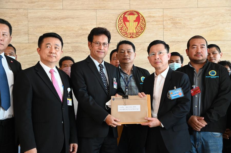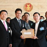 นพ.สุกิจ อัถโถปกรณ์ ที่ปรึกษาประธานสภาผู้แทนราษฎร รับยื่นหนังสือจาก นายมงคล สุขเจริญคณา ประธานสมาคมการประมงแห่งประเทศไทย และรับยื่นหนังสือจากนายนันทชัย สุขเกื้อ ประธานเครือข่ายผู้ได้รับผลกระทบจากกฎหมายประมงภาคประชาชน
