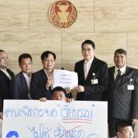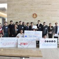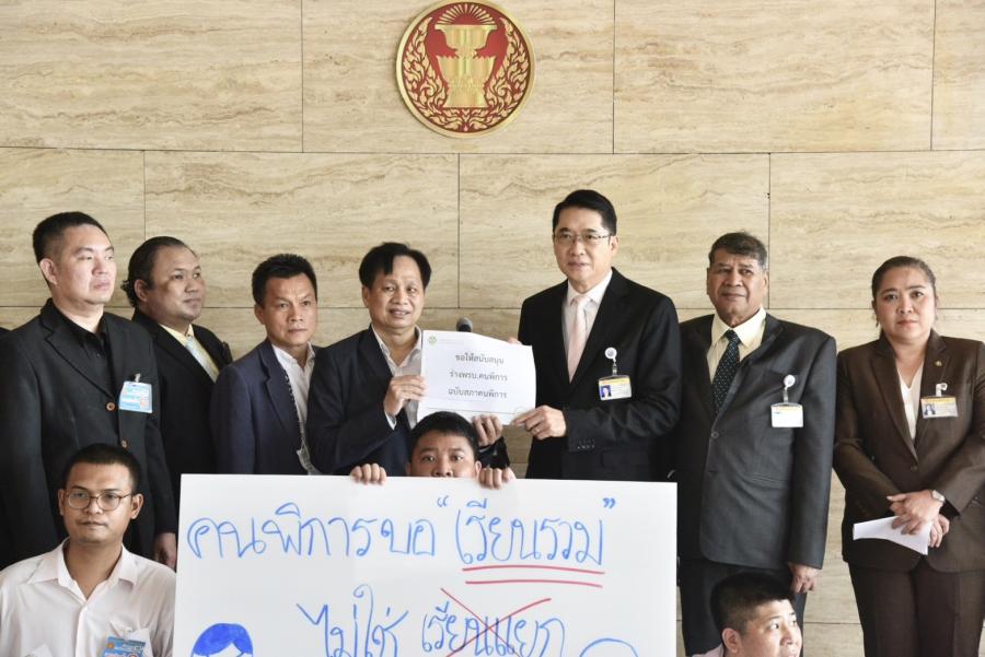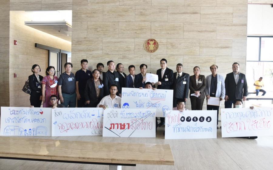 นายองอาจ คล้ามไพบูลย์ พร้อมด้วย พล.ต.ต.สุรินทร์ ปาลาเร่ และน.ส.พิมพ์รพี พันธุ์วิชาติกุล ส.ส.พรรคประชาธิปัตย์ รับยื่นหนังสือจาก นายชูศักดิ์ จันทยานนท์ เลขาธิการสมาคมสภาคนพิการทุกประเภทแห่งประเทศไทย และคณะ